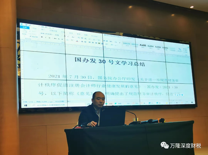 首先,所长郭龙华对“国办发30号文”进行学习总结,他强调大家应该充分认识30号文出台的重要意义。党中央高度重视注册会计师行业发展,要求会计审计机构增强自律性、公正性和专业化水平,有效发挥财会监督作用,这些要求为注册会计师及会计师事务所发挥职能作用提供了根本遵循,对于加强会计师事务所监管,遏制财务造假,规范审计秩序,提高审计质量,促进行业健康发展,具有重要意义。