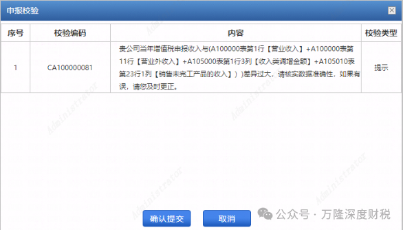 四、增值税收入与企业所得税口径收入较大,系统也会提示