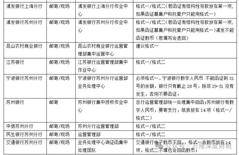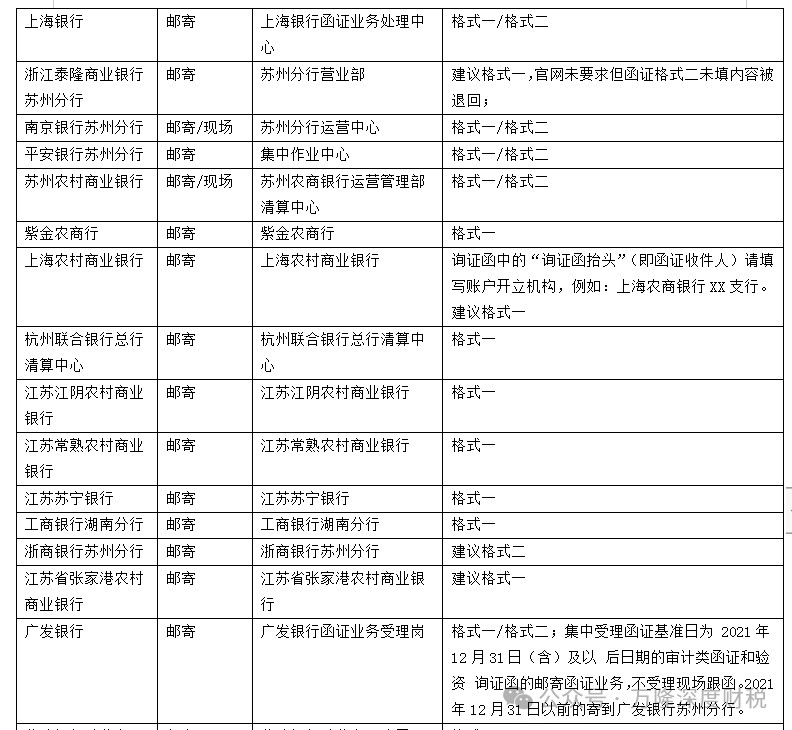 1、邮寄到银行函证中心的纸质函证:所有银行(除农业银行必须用格式二)均支持格式一。部分银行支持格式二,具体格式要求可搜索“****银行函证公告”进行查询。