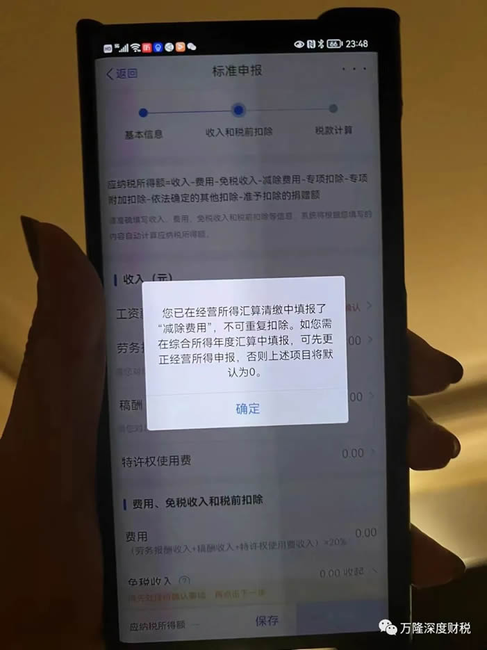 ——按照2021年综合所得汇算新文件,减除费用6万元可以在综合所得或者经营所得中自行选择!