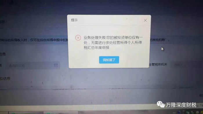 如果只有一处经营所得,填了C表,会出现如下图提示: