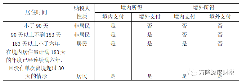 无住所人员根据其在境内居住时间,可分为两类,一类是居民,一类是非居民。